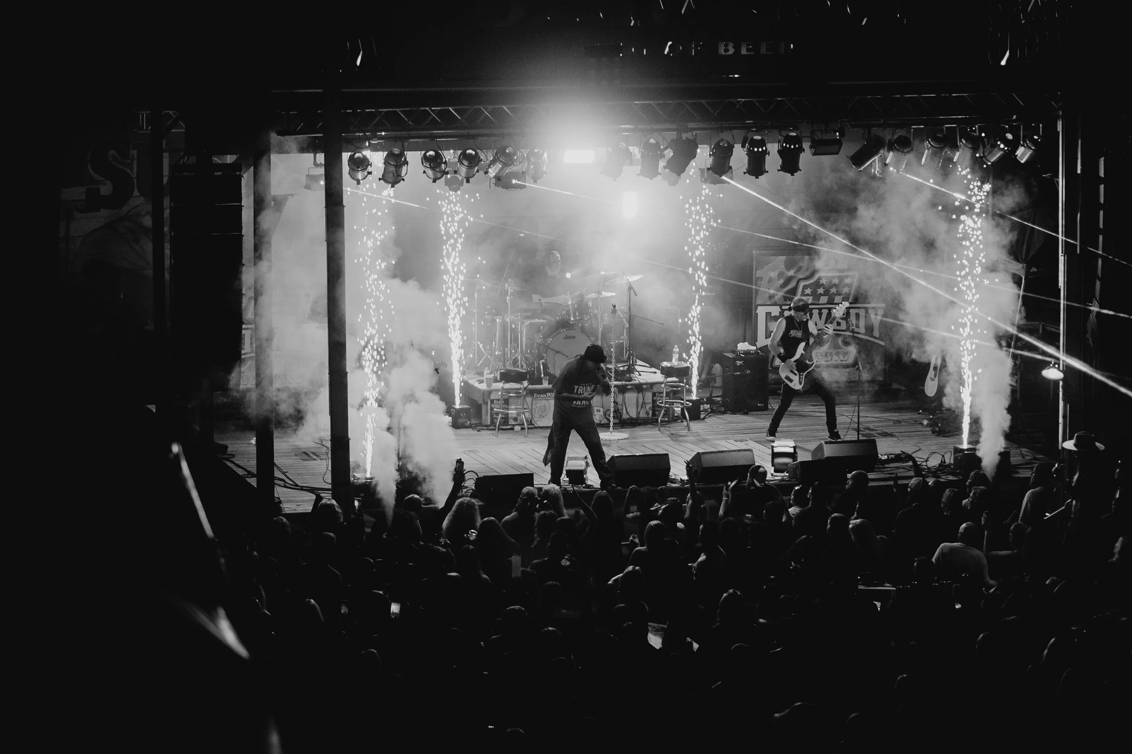 Each show is a concert experience, playing all of kid rock‘S hit songs, as well as adding subtle twists, paying tribute to Lynyrd Skynyrd, zz-top, guns-n-roses and yelawolf but each show never duplicates the one before. There are no ordered set lists, no tracks being run, no formal choreography. Just old school rock n’ roll. Cowboy’s shows take you back to Woodstock meets the viper room days, where music is about one of a kind guitar riff solos, adlib vocal stretches and drums that vibrate your chest while watching.